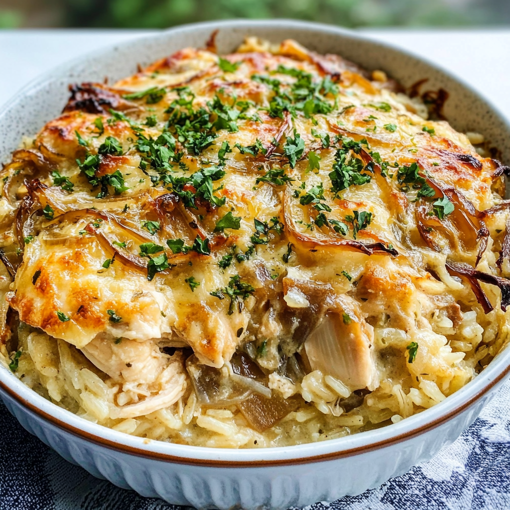 The best part? This recipe is highly versatile, allowing you to customize it to your dietary needs or preferences. Whether you’re looking for a comforting weeknight meal or a dish to impress guests, this French Onion Chicken Rice Casserole is sure to become a new staple in your kitchen.