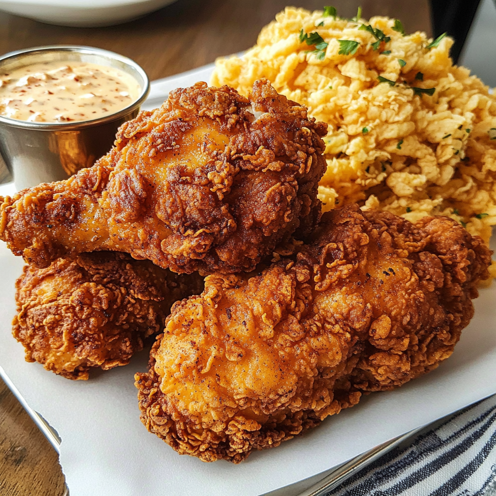 • Complement the fried chicken with a side of baked beans or mac and cheese for a complete comfort food feast.