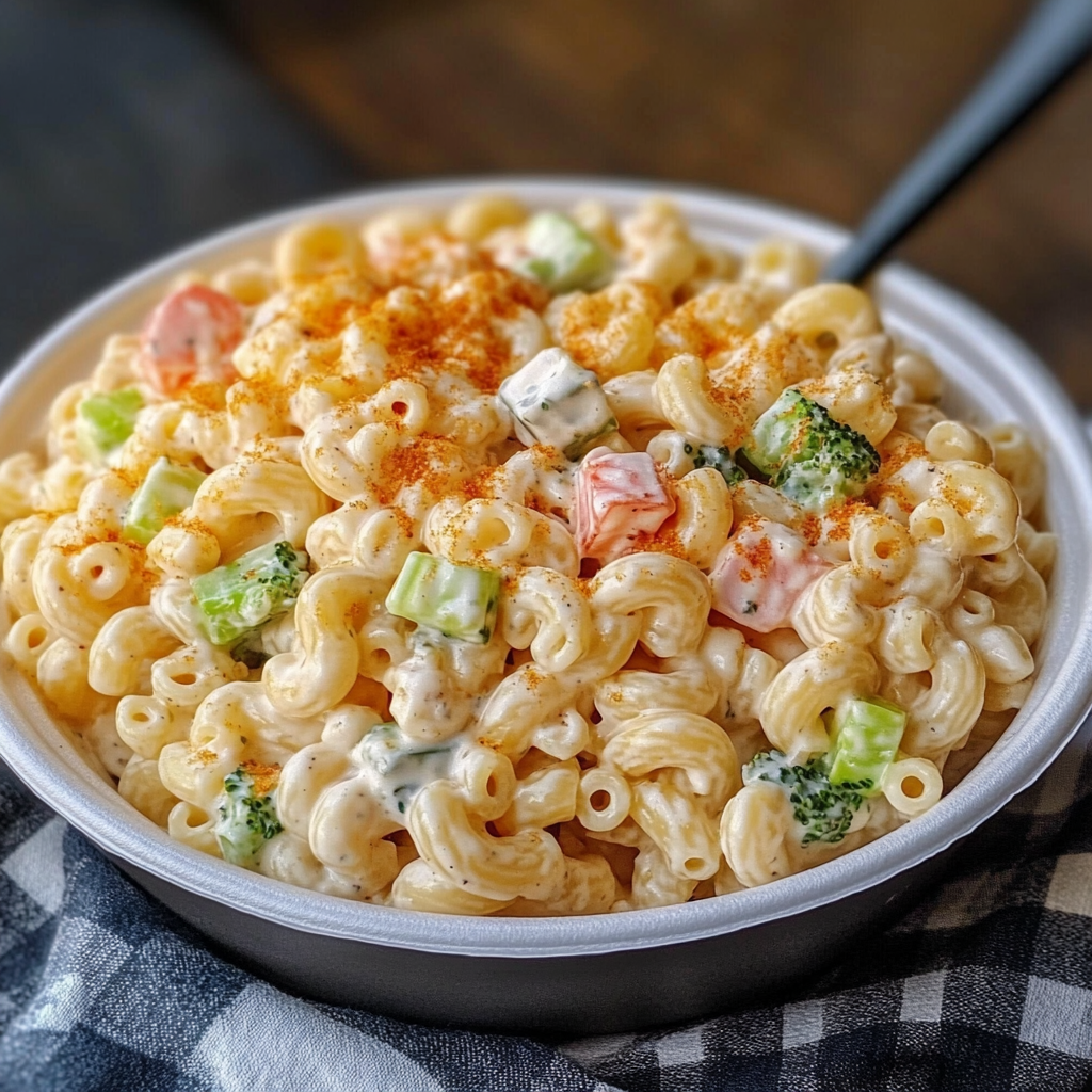 The beauty of this macaroni salad is that most ingredients are pantry or freezer staples. The combination of tender macaroni, creamy dressing, and crunchy vegetables creates the classic flavor profile that has made this type of salad a perennial picnic and potluck favorite.
